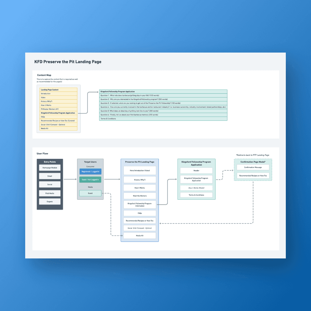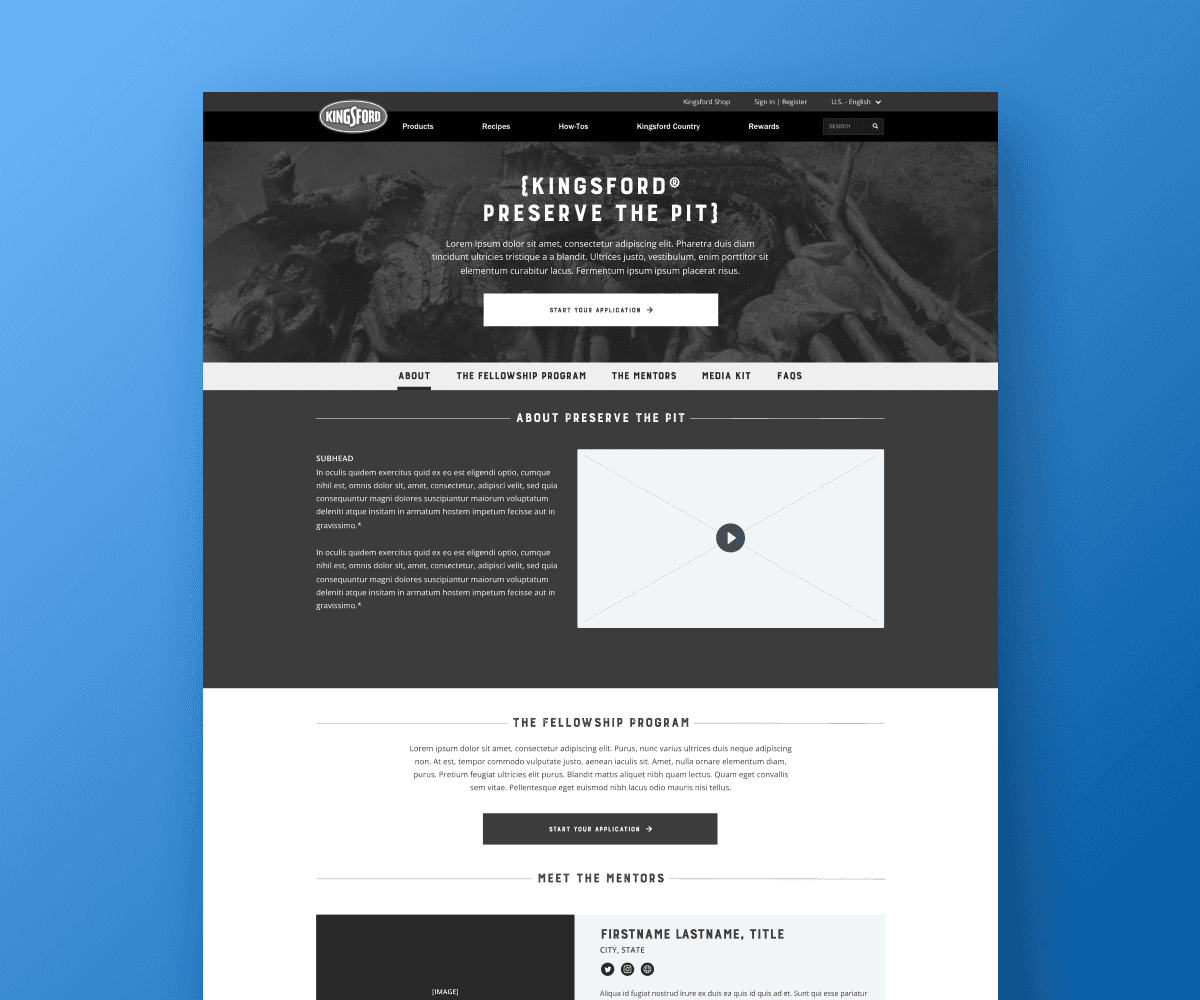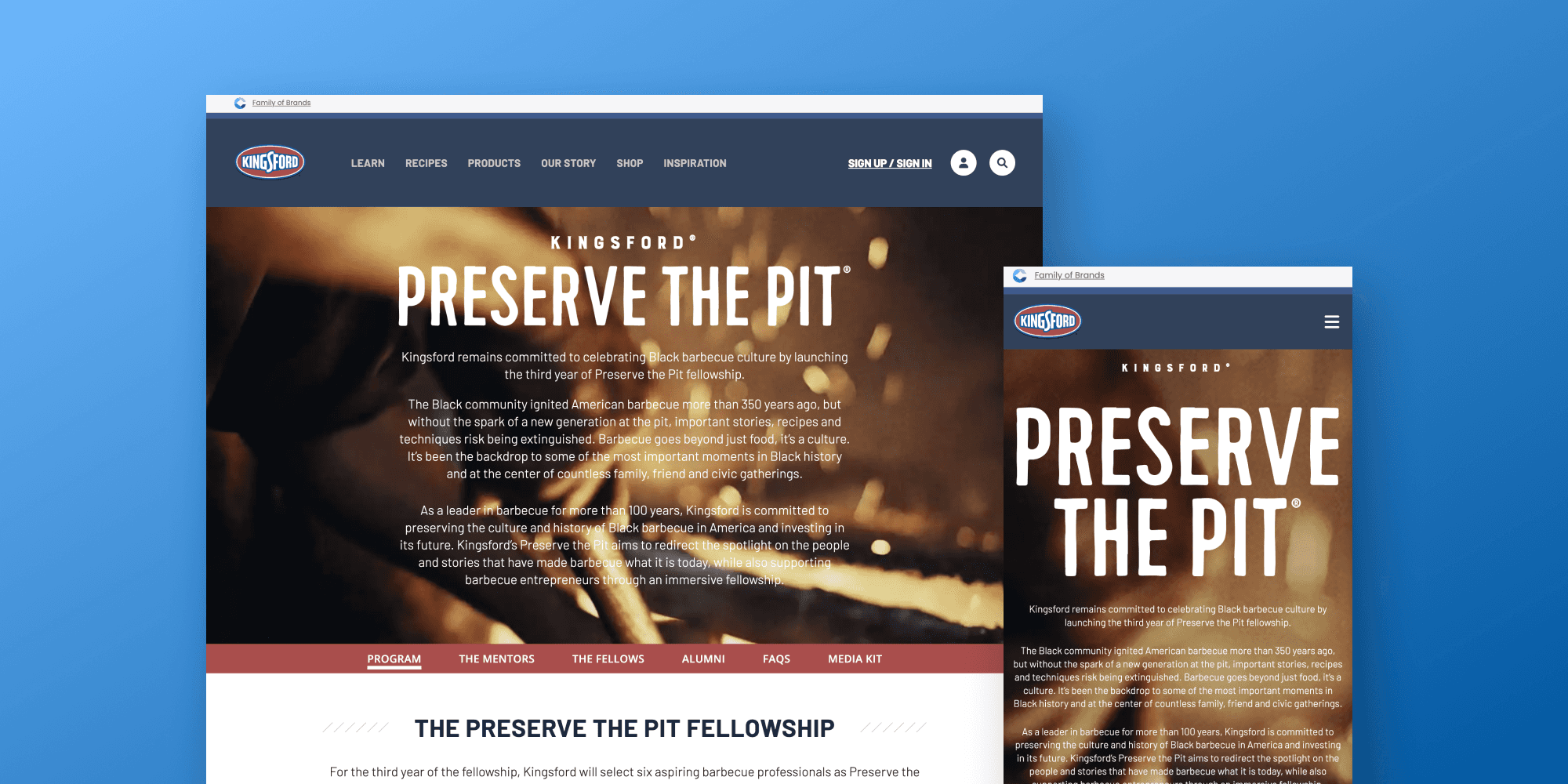 The Kingsford - Preserve The Pit project was an 8-week initiative to promote the history and future of Black barbecue through a dedicated campaign and landing page on Kingsford.com. As a Senior User Experience Designer, I led a team comprising a Project Manager, Front-end Developer, Art Director, and Account Director to design an interactive platform that told the story of the "Preserve the Pit" program and facilitated the application process for an exclusive fellowship.