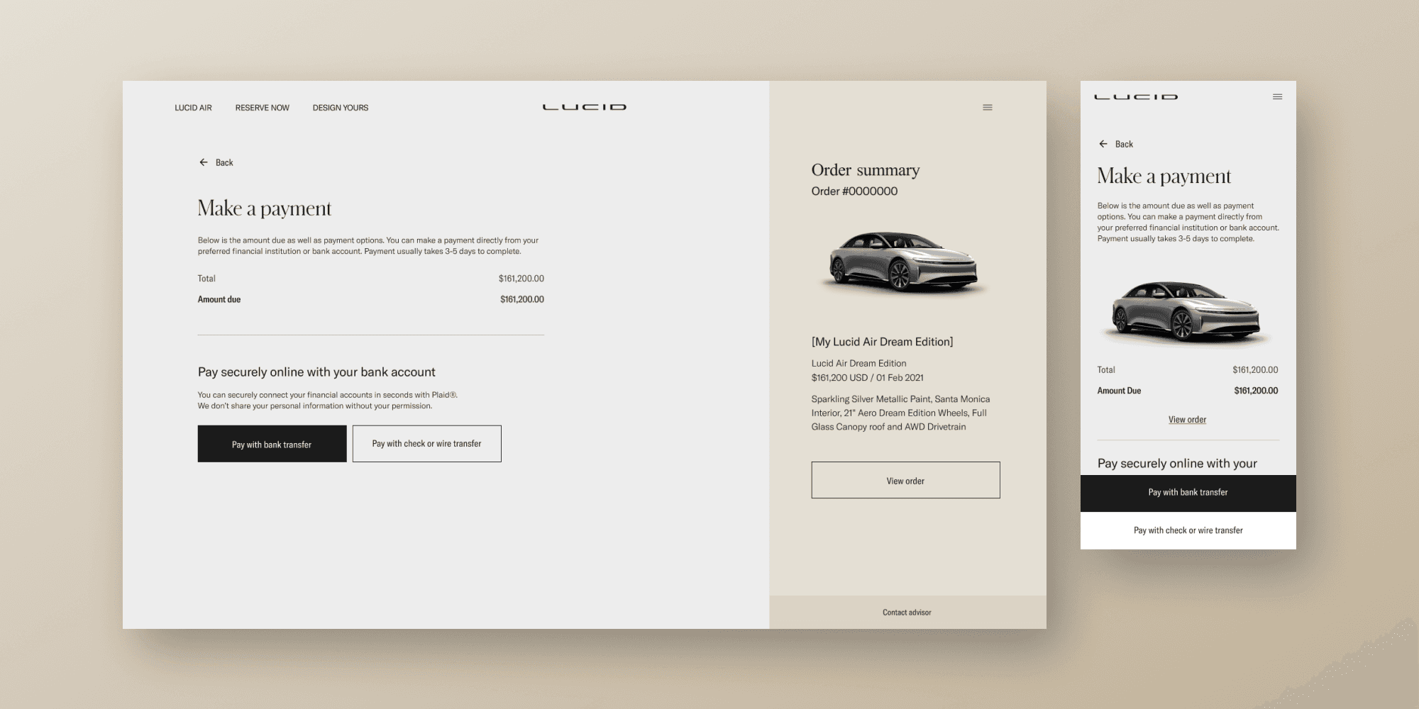 Lucid Motors is an American electric vehicle company that needed to introduce a way to take payments through its web application. The project aimed to revolutionize the payment process for Lucid Motors by integrating SAP and Plaid into its web application. Spanning 16 weeks, the project was comprised of a diverse team, including product designers, a product manager, engineers, and a delivery lead.